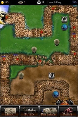 Tap Defense is a simple (but very addictive) game, based on three maps and six tower types, all of which work pretty nicely together. What makes it so good though is that fact that you earn interest on any gold that you save (rather than emptying the pot by buying or upgrading towers). This means that unlike other Tower Defense games the optimum strategy is not to build the most powerful defense, but to build the minimum defense that will work on any given level.