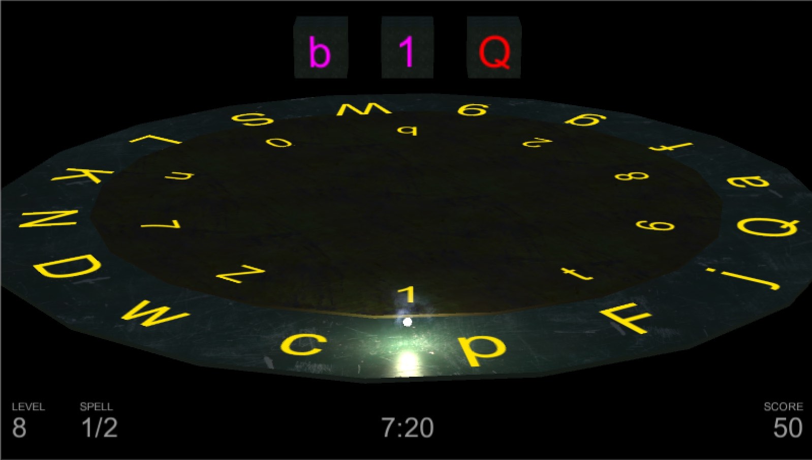 For my own effort I went for a simple action puzzler based on a ritual circle. You play a Wisp, forced to activate runes at your master’s bidding by rotating the layers of a ritual circle, with less and less time to achieve each combo. Points are awarded based on the time left on the clock at the end of each summoning. You can play Wisp online here (it will prompt you to download the Unity web player, which is not supported by Chrome) – put the sound on, it’s my one and only attempt at voice acting!