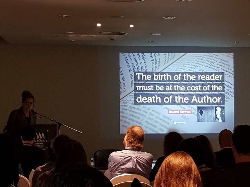 At the beginning of the conference I co-ran a workshop on Authoring alongside Charlie Hargood, Alex Mitchell and Ulrike Spiering. Alex and Ulrike have run this before, but this year was the first time we ran the event as a sister workshop to the longstanding Narrative and Hypertext workshop that Charlie and I co-run at ACM Hypertext. It was a busy event, with some great presentations. I particularly liked Hartmut Koenitz provocative questions on authoring tools – why do we have so many, how can we describe them, and what consequences do tools have for the resulting stories? Even though my gut reaction is that we can answer these fairly easily in reverse – once we understand the poetics of different forms, we can start to standardise their representation, and we have many tools because we have many different forms. It’s a very interesting question as to what point we understand things well enough to standardise, although I’m pretty certain if we concentrate on a particular form (for example, locative literature or chat-bot storytelling) then that point will come sooner.