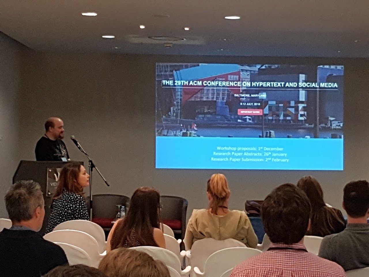 I’ve come across James Ryan and his work unearthing the earliest storytelling machines before, and his Twitter feed is a treasure trove of interesting discoveries, so it was a pleasure to hear his presentation about going down the rabbit hole and discovering some of the very earliest digital systems to work with storytelling and narrative – as far back as 1962, with promise of even earlier work. The Hypertext community draws a lot from its extended history, with much resting on Vannevar Bush and his amazing 1945 vision of what computing machines could become in ‘As We May Think’, so its exciting to see this community also begin to properly explore its pioneers and try to recognise their contribution.